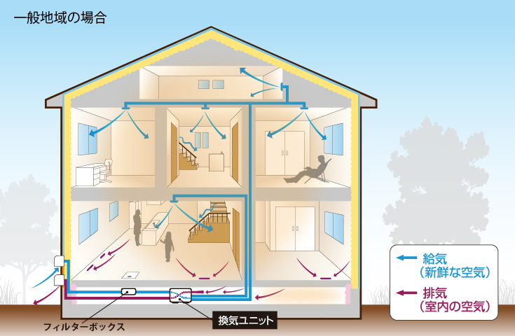 換気システムは、窓を開けなくても換気装置を使用して強制的に室内の空気の入れ替えができるシステムのことです。