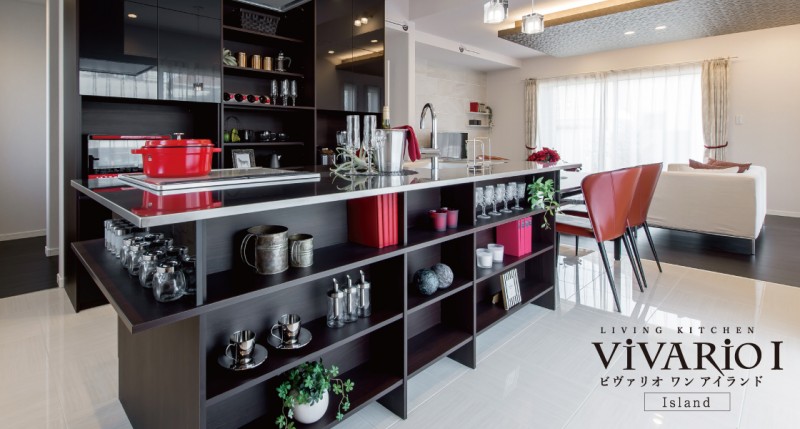 オリジナルリビングキッチン『ViVARiO(ビヴァリオ)』はリビングのインテリアと融合した、味わい深い木目柄の風合いを大切にしたキッチン。