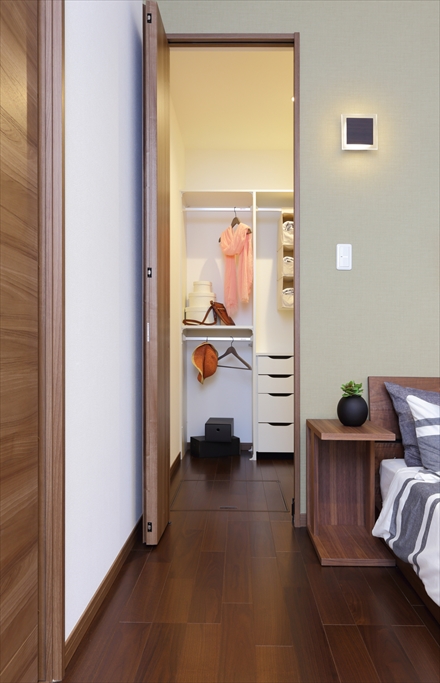 ウォークインクローゼットとは、名前の通り、内部を歩けるクローゼットのことで、広い収納スペースとなります。