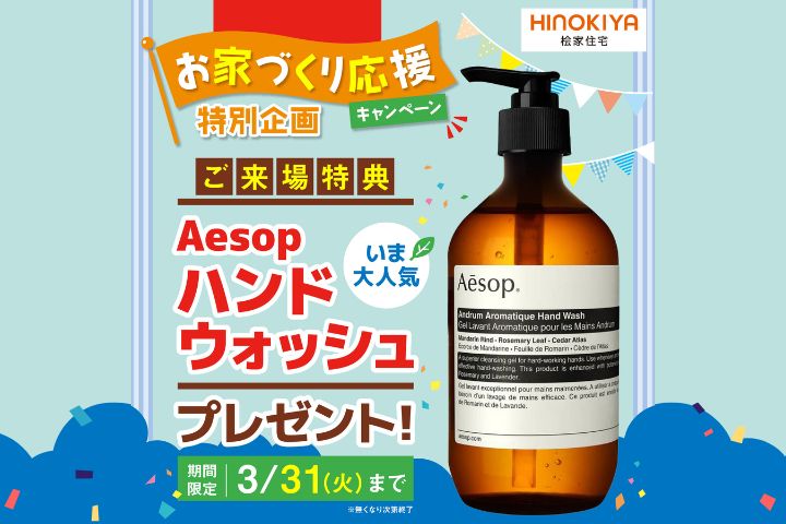 お家づくり応援キャンペーン!Aesopプレゼント!