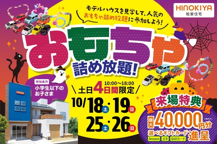 桧家住宅の展示場を見学して、ハロウィンの袋におもちゃを詰め放題!