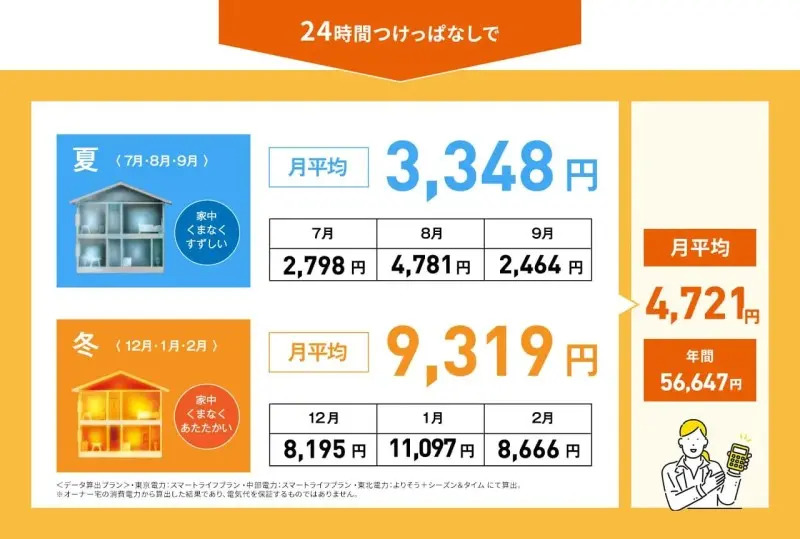 なんと、24時間365日、家全体を快適な温度に保ちます!