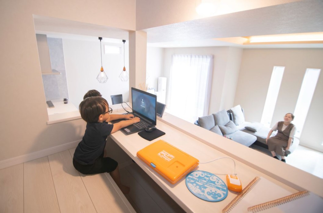 「展示場に行った時にコミュニケーションブリッジを見て、夫婦ともにとても気に入り、将来的には子供が勉強するスペースになったらいいなと思う。階段下収納も広く助かっています。」とM様。空間を最大限に有効活用するご提案をさせていただきました。