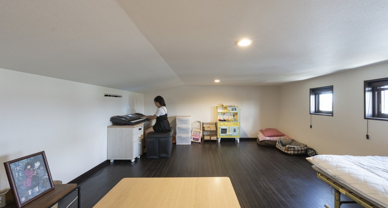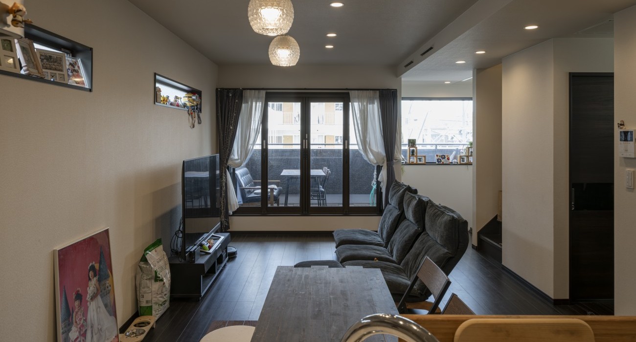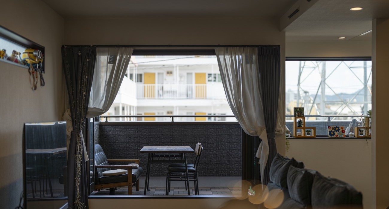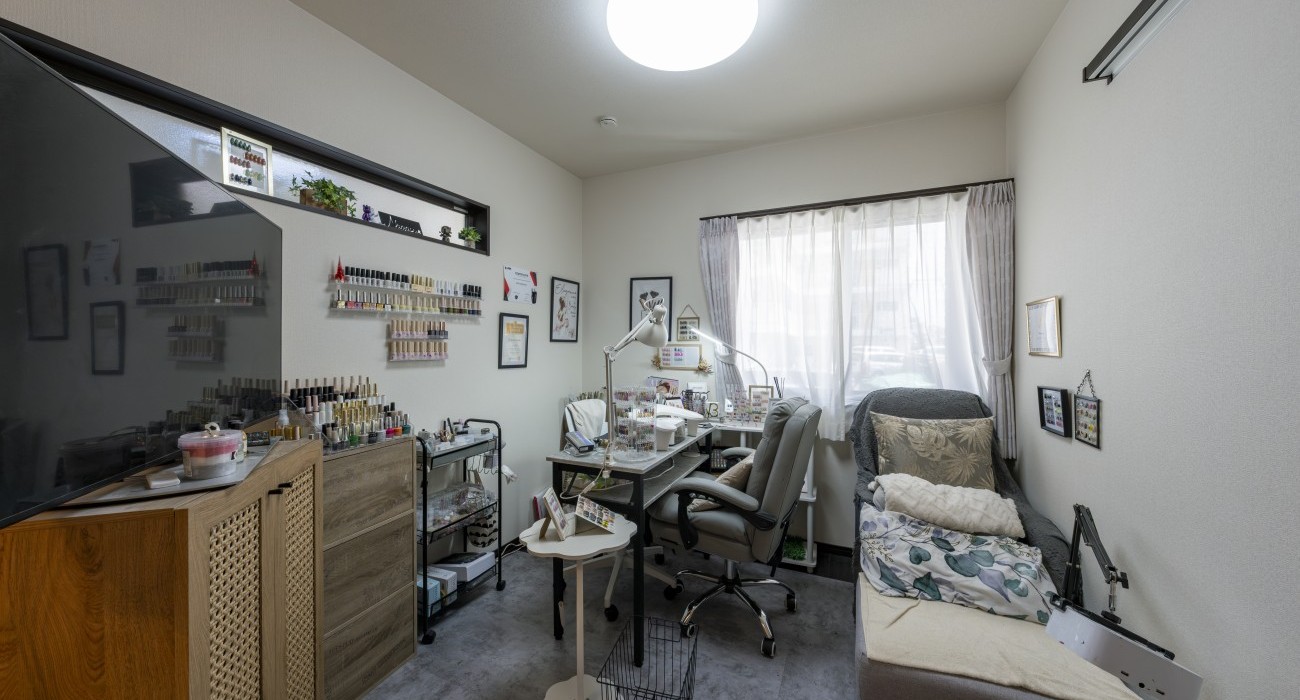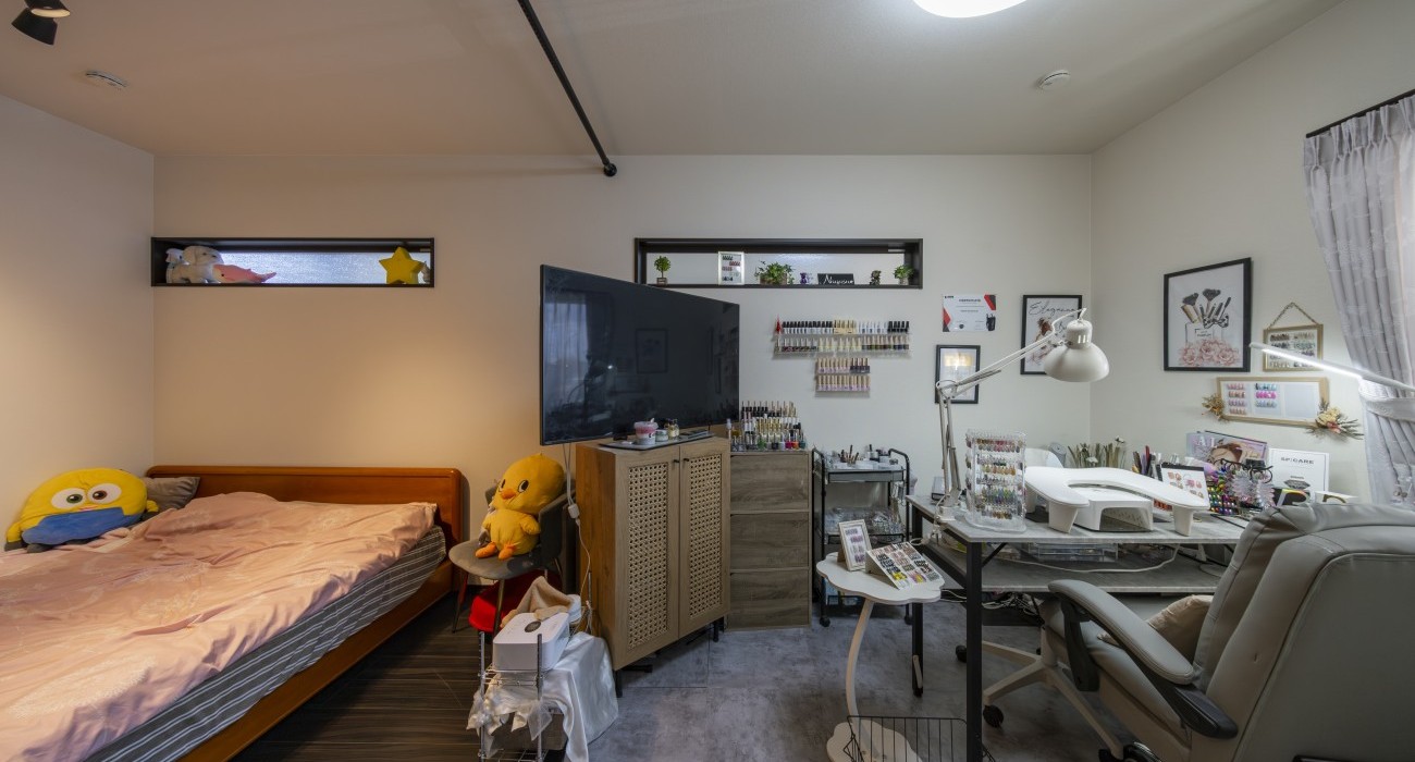 開放感のあるベランダにソファとテーブルを置き、外の空気を感じながら家族のだんらんを楽しめる住まい。さらにネイル専用の部屋も備えています。